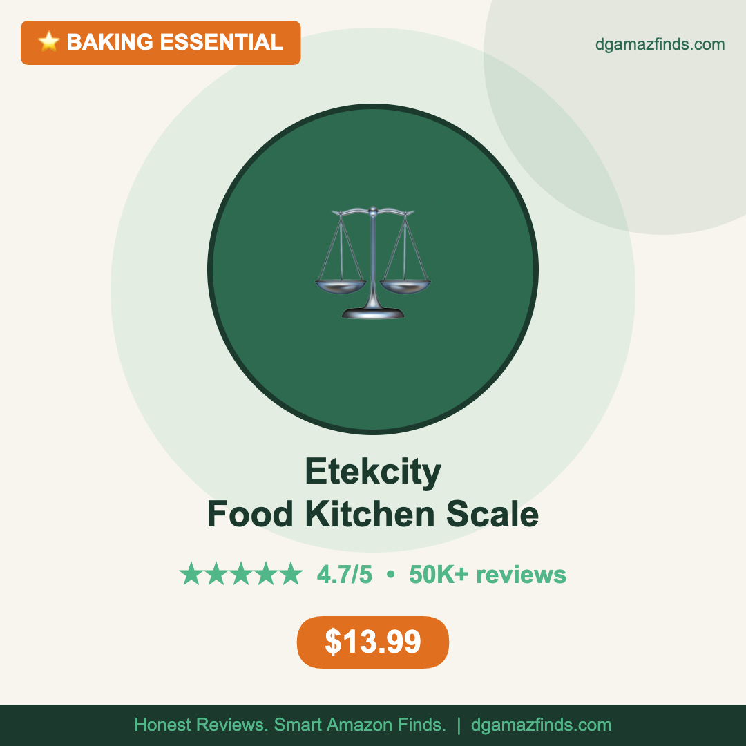Etekcity kitchen scale review: accurate digital grams and ounces, tare function, stainless platform. Best budget food scale for baking and portion control.