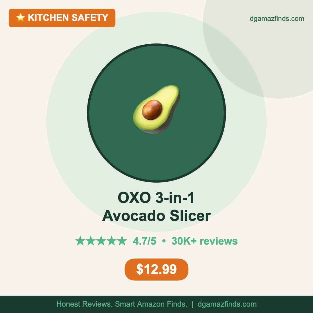 OXO avocado slicer review: 3-in-1 tool splits, pits, and slices safely. No more avocado hand. Best avocado gadget under $15 on Amazon.